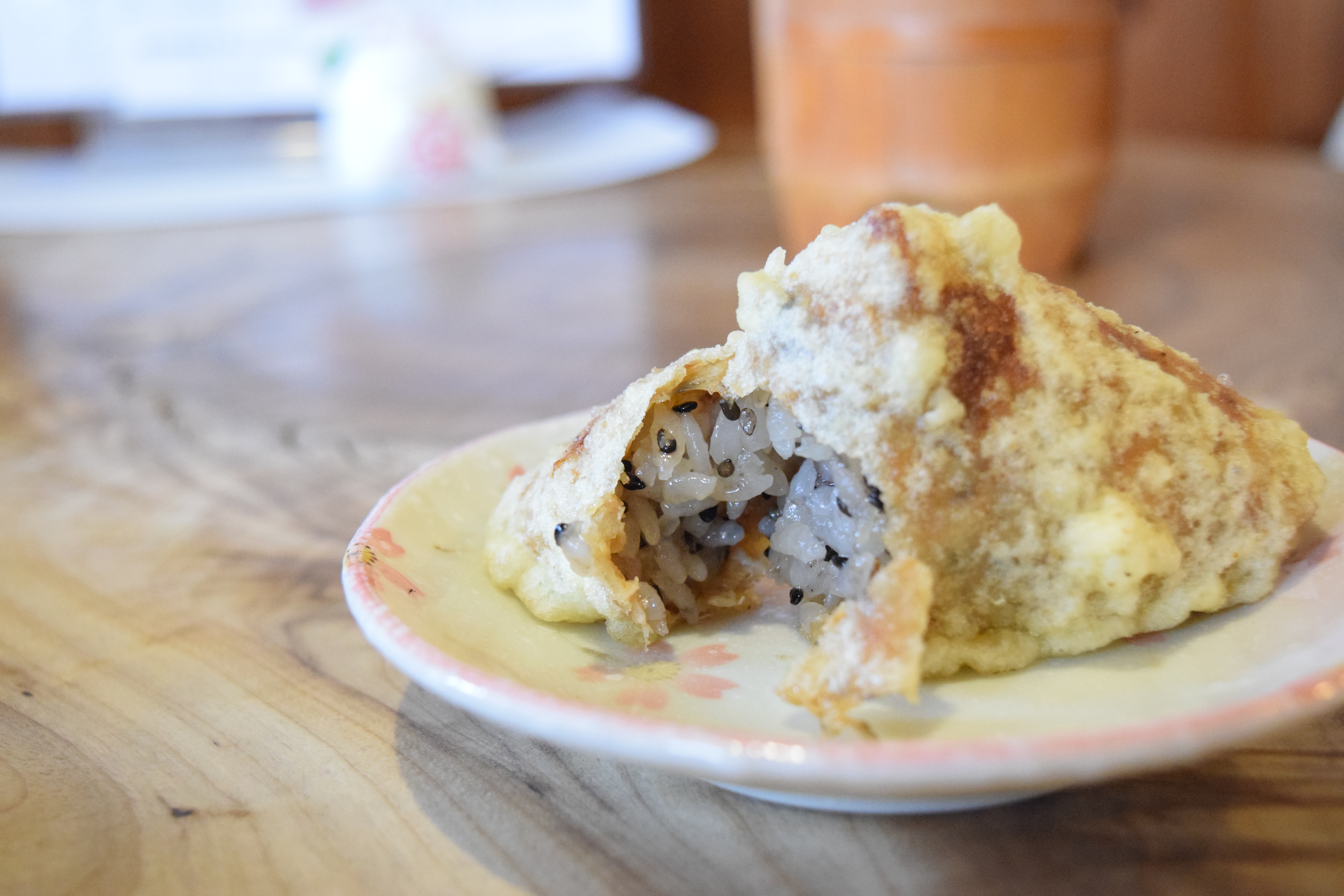「すどりかま玉」とセットで提供している「揚げいなり」も人気です。いなりずしをもっとおいしく食べる方法はないか模索していた時に、揚げるという方法を知り、2000年くらいから提供を始めました。普通のいなりずしももちろんメニューにありますが、注文いただくのは揚げいなりばかりです(笑)