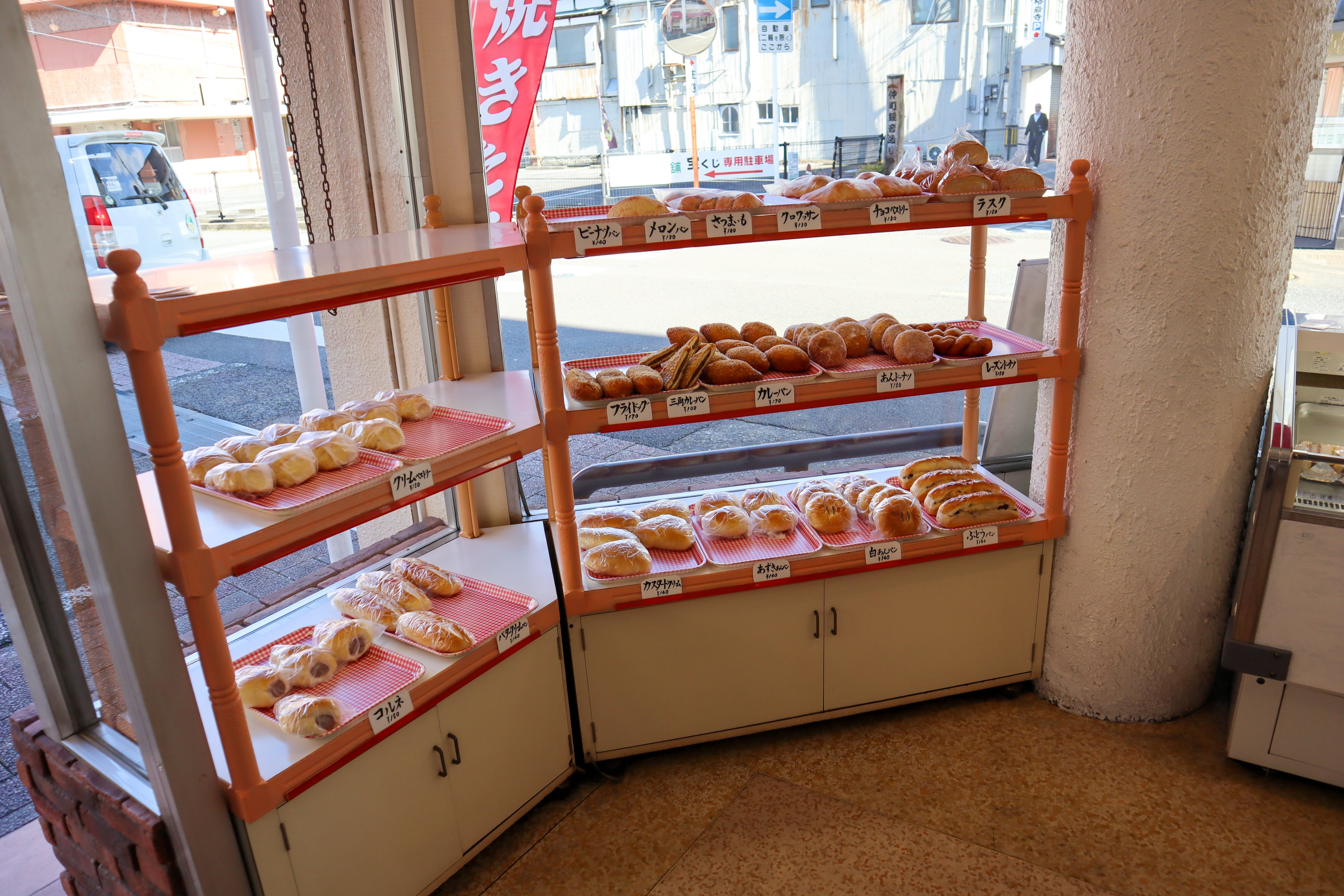 当店では、時代に合わせて進化した製法を取り入れていきながらも、伊万里市民の皆さんにご愛顧いただいている昔からのパンを販売しています。朝からどんどんパンを焼いているので、随時焼きたてパンを店頭に並べています。